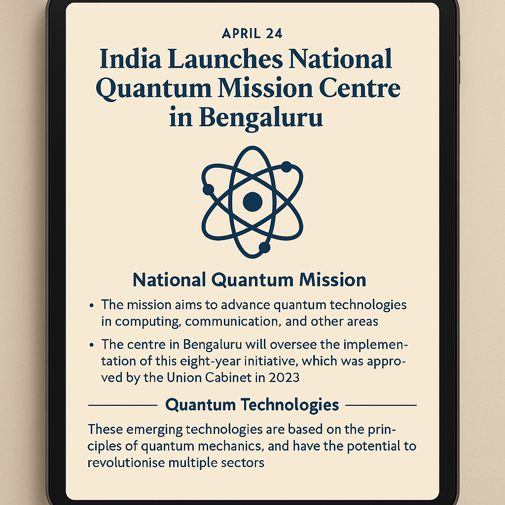 001-Apr 24, 2025: ✨India Launches National Quantum Mission Centre in Bengaluru