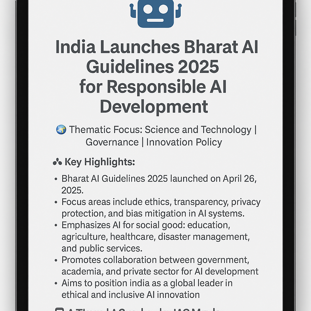 004-Apr 26, 2025: 🤖 India Launches Bharat AI Guidelines 2025 for Responsible AI Development