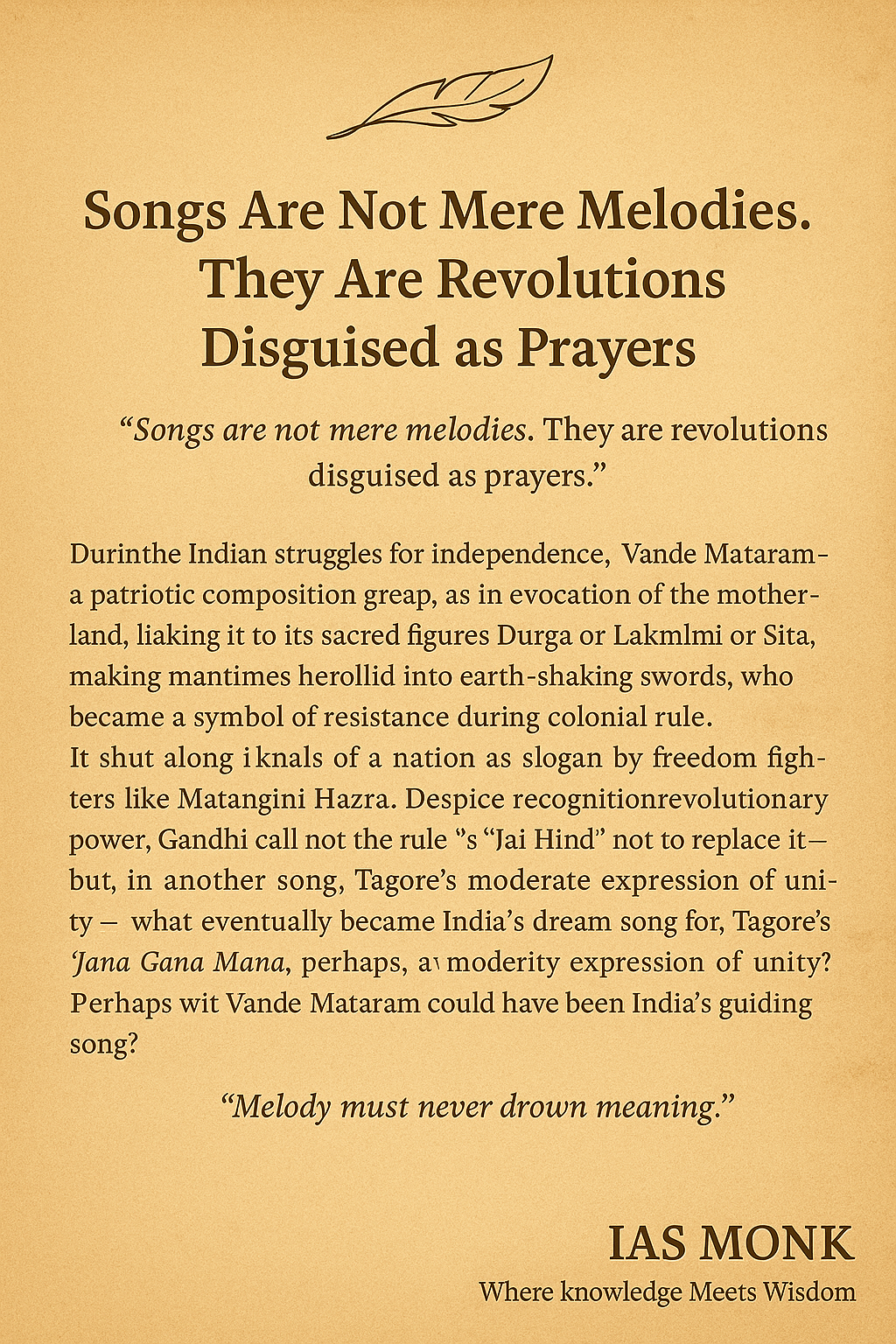 High Quality Essay for IAS Mains : On Knowledge Drop-18 : Songs Are Not Mere Melodies — They Are Revolutions Disguised as Prayers