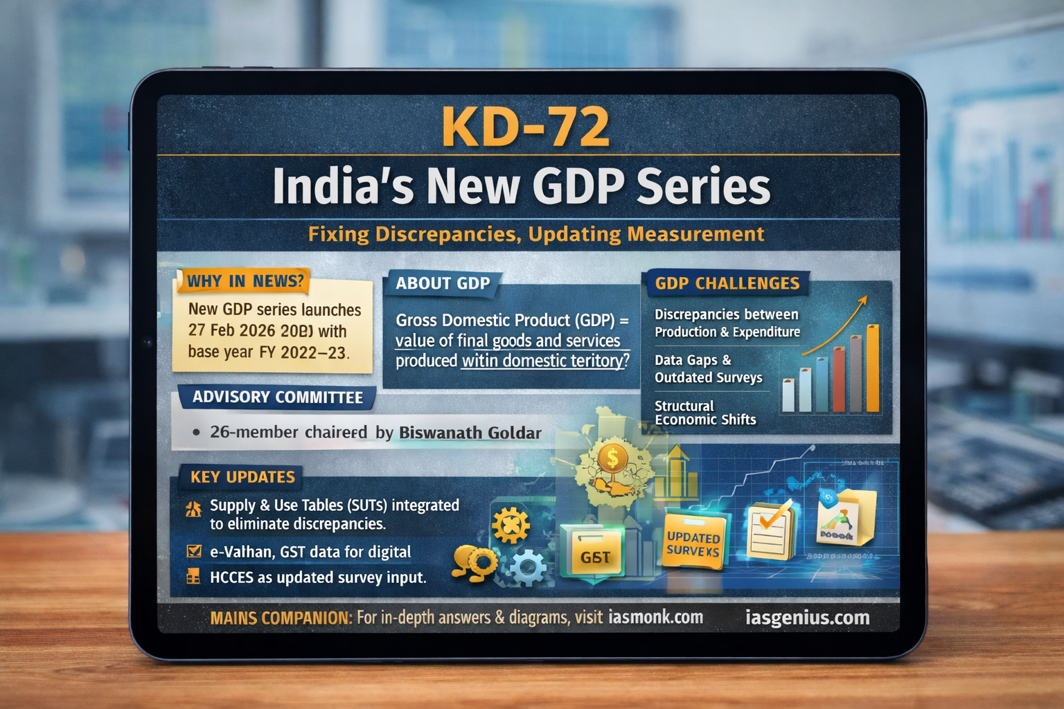 India’s New GDP Series: Fixing Discrepancies, Updating Measurement Post Date: 25-12-2026Syllabus: GS-3 | 💹 Indian Economy Context 📊 The Ministry